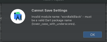 위에서 언급했듯이 프로젝트명은 소문자와 언더스코어만 허용한다. 그렇치 않을 경우 위와 같은 경고를 준다.