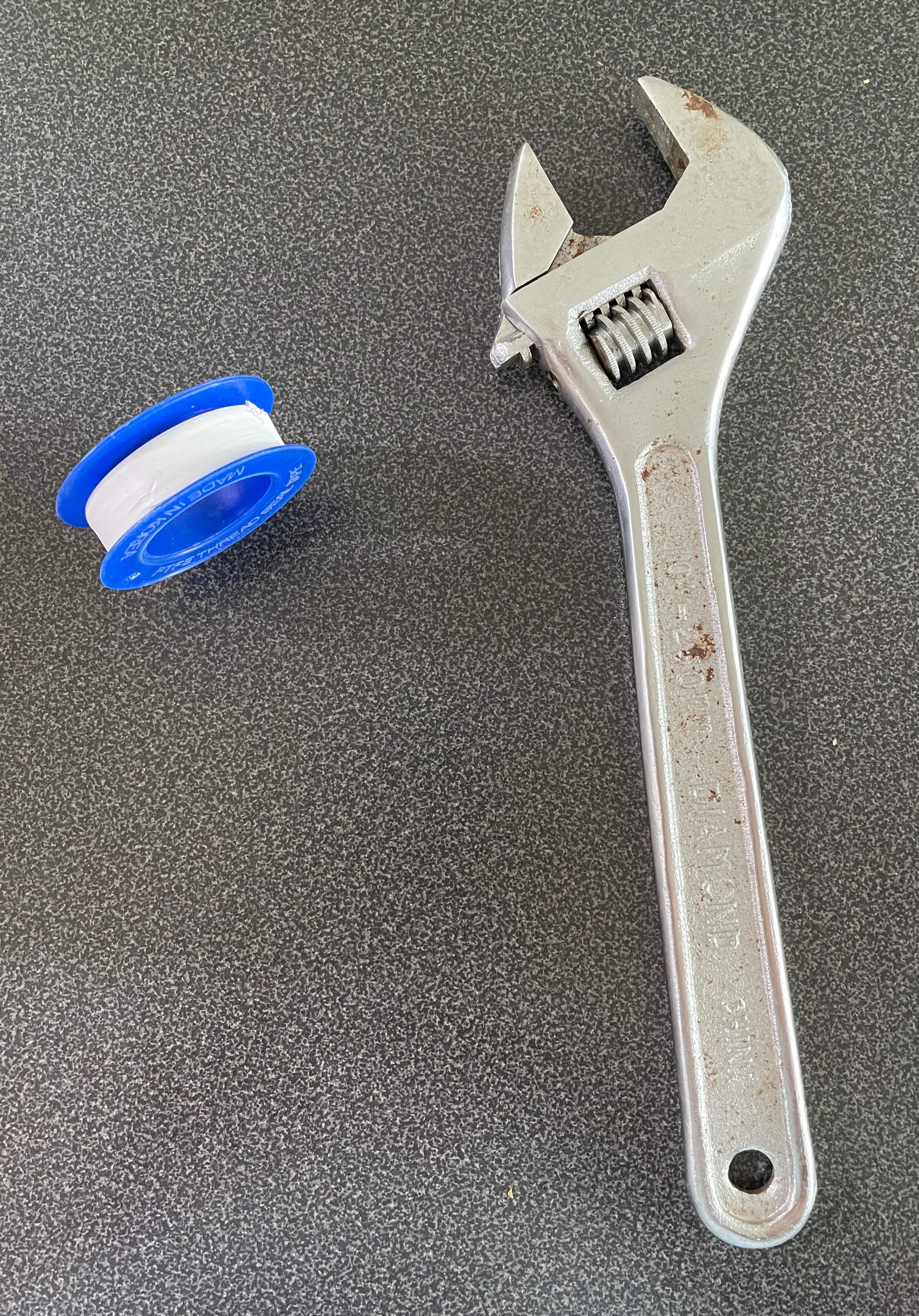 스패너는 좀 큰게 필요하다. 250mm 이상 물릴수 있는 것이 필요하다.