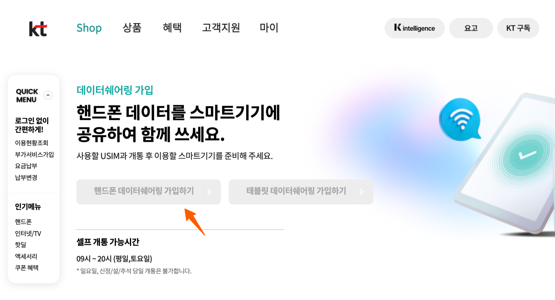 무선라우터와(동글, 라우터스틱) 유심만 준비하면 온라인에서 바로 개통하여 사용할 수 있습니다.