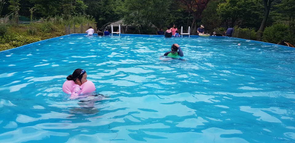 이곳을 찾은 첫번째 이유 수영장. 계곡물을 끌어와 채워진 수영장. 코로나19 영향인지 사람도 많치 않고 돌아오는 날까지 원없이 놀다 왔다