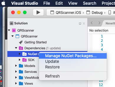 여튼 프로젝트 폴더서 마우스 오른쪽버튼 --> Manage Nuget Packages...선택