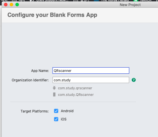 App Name : QRScanner 입력 후 Next;;